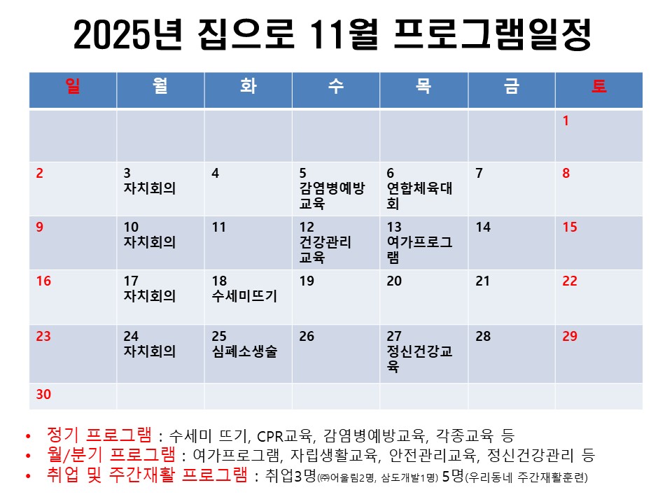 2025년 11월 집으로정신재활시설 프로그램일정 안내