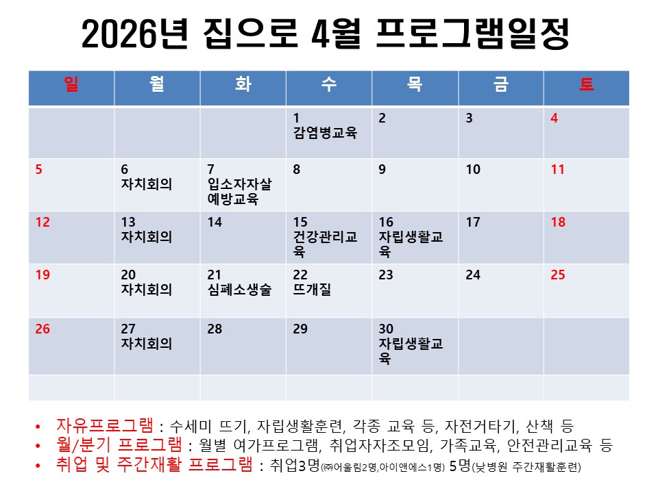 [공지사항] 2026년 4월 집으로정신재활시설 프로그램일정 안내
