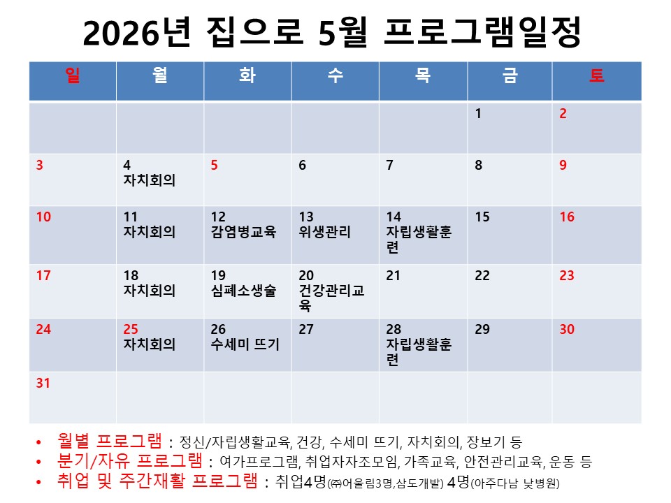 2026년 5월 집으로정신재활시설 프로그램일정 안내